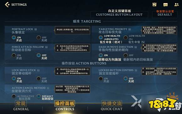 通过这里我们可以设置很多的攻击方面的内容,主要包括头像锁定、攻击目标优先级、自动追击、摇杆固定、画中画等功能。