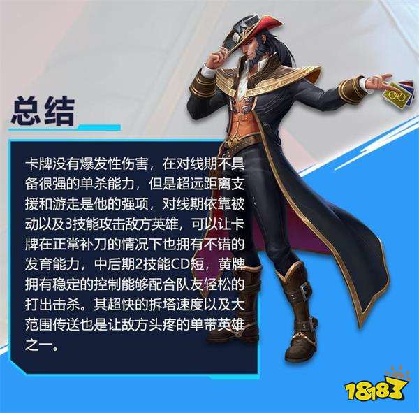 到了后期卡牌伤害一般,要利用黄牌的稳定控制限制敌方英雄,配合队友打输出。或利用大招的远距离位移单带,单带