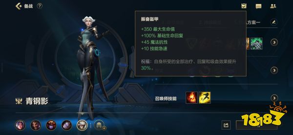 最后一件我们就出振奋,出这件装备来提高我们的回复,同时振奋提供的魔抗也可以防止我们打团进场被对面的中单秒掉。