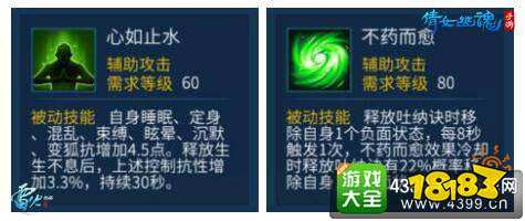在玩家PK时,侠客可以选择心如止水、不药而愈来提升控制抗性和解除负面状态。