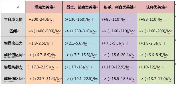 我们对所有英雄的基础属性均做了微调,对各职业英雄的成长属性进行了较大的调整,具体调整数值情况如下: