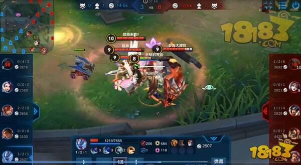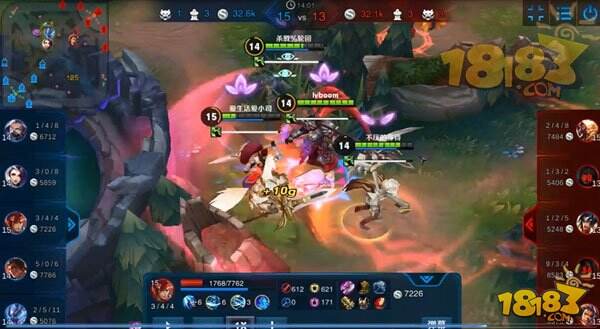 然而蓝方采用四一分推战术,利用兰陵王具有隐身的能力来推塔。而红方项羽为守护下路二塔,从大龙区一路赶来,然而蓝方杀了个回马枪,兰陵王汇合大部队直接五打四,在狭隘的野区强行开团。甄姬的大招在这时候发挥的巨大的作用,直接控住三人。打了个2换4。