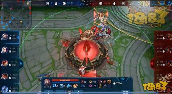 在缩小差距后,双方复活的十人再次聚在中路爆发新一轮的团战,此战一直从张飞变大打到变小。蓝方的甄姬兰陵王吕布都是具有无限消耗能力的英雄,通过各种拉锯战以及甄姬巧妙的大招出手时机团灭对方,打出2换5。比分直接追成12:13