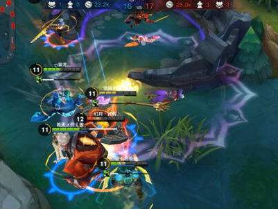7:45,下路团战一波,武则天和李白的大招都被对手逃脱,张飞开启大招保护露娜,露娜伤害超高贴脸将项羽击杀,这波团战蓝方打了个3换4。此时人头比为17:9,经济差距4K,蓝方优势明显。