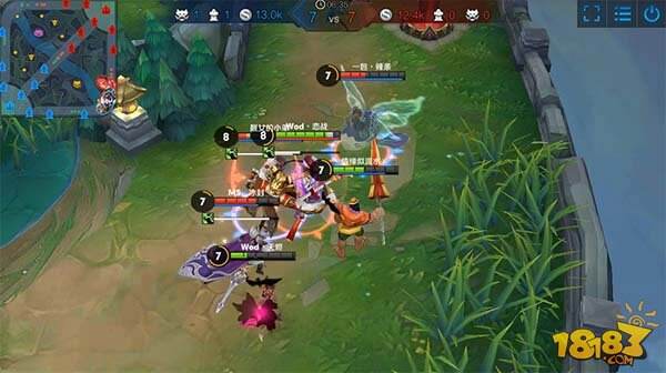 6:30,下路团战一波,李白一招作用敌方4人,庄周和孙悟空直接去一半血,刘邦被宫本直接打至残血,花木兰伤害超高将张飞打至残血,安琪拉后方大招直接将宫本和张飞击杀,李白越塔将安琪拉击杀,这波团战蓝方打了个2换5。