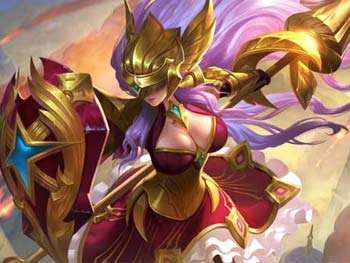 雅典娜举起圣盾,产生一个巨大的护盾,短暂时间后圣盾碎裂对范围内敌人造成伤害与减速效果;如果护盾被打破雅典娜会受到晕眩效果。