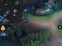 右上角就是游戏的小地图界面,即时显示当前对战情况,包括视野中的敌我位置,敌我建筑标识等。地图下面的四个标记可以让玩家在地图上打出标记,提醒队友配合。宝剑表示一起进攻进攻,感叹号表示小心偷袭,盾牌表示防守反击,小旗代表集合地点。