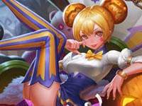 万圣节推出的皮肤,其皮肤风格充分应用了浓郁的万圣因素,南瓜和礼物搭配着紫黄服饰,摇身变成搞怪少女“不给糖果就捣蛋”。且一技能推出皮肤独特特效,扇舞飞旋尽显橙色韵味。