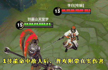 技能介绍:攻击距离比通常近战英雄远,附魔状态下普攻造成真实伤害,并回复自身生命。附魔状态下1技能如果未命中敌人则附魔状态消失