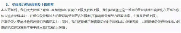 这次体验服更新,将会对不同段位设定荣耀战力的上限,只有在高段位,才有可能获得更多的战力收益。