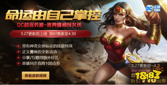 DC正版授权-神奇女侠降临王者大陆,雅典娜化身亚马逊最强战士,捍卫世界和平,唤醒人们心中的正义!屈服吧,你逃不出我的手掌心!