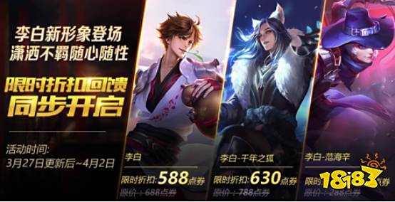 3、 李白全新形象登场,同步限时折扣回馈开启!