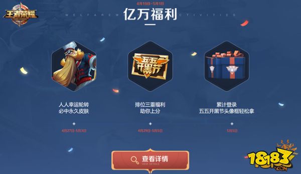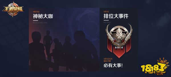 4月29-5月1日,玩家通过参与运营活动将有机会获得三张开黑卡。作为奖励,在5月5日当天登录的王者也将有机会获得一张。在5月5日00:00~23:59,五排的玩家将可能获得三次不掉星的机会。