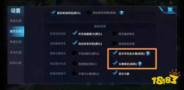 方框中我还勾了头像锁定。这个设置的作用是锁定攻击敌方英雄。相信大家都有过这样的情况,明明想攻击敌方残血的输出,可英雄总是去打敌方的坦克,非常的烦。