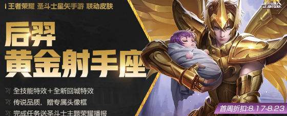 后羿的黄金射手座皮肤会在本周五17号的七夕节中正式上架。售价1688点券,首周折扣1388点券。可以说还是非常值这个价的,喜欢的朋友千万不要错过呀!
