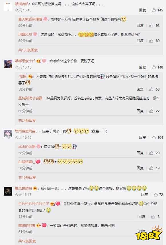众多网友也纷纷表达自己对于这些价格的意见,更多的目光集中在猫神身上,有的玩家表示,猫神这价格真心高,不知道谁会买,但也有一部分玩家表示,老帅当时都千万的转会费,猫神现在四个冠军在手,这个价格也是应当的,至于谁买,王者荣耀职业战队有钱的土豪应该还是有一些的吧!