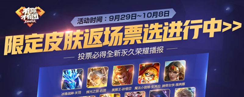 A:在活动页面,每个玩家可以通过登录、对局、拉票等行为获得投票券,使用投票券可以选择你期望返场的皮肤进行投票。最终票数前两位的皮肤将在周年庆期间进行返场。