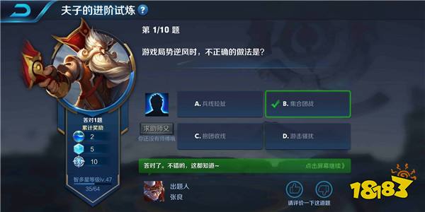 王者荣耀夫子的进阶试炼问题:游戏局势逆风时 不正确的做法是?
