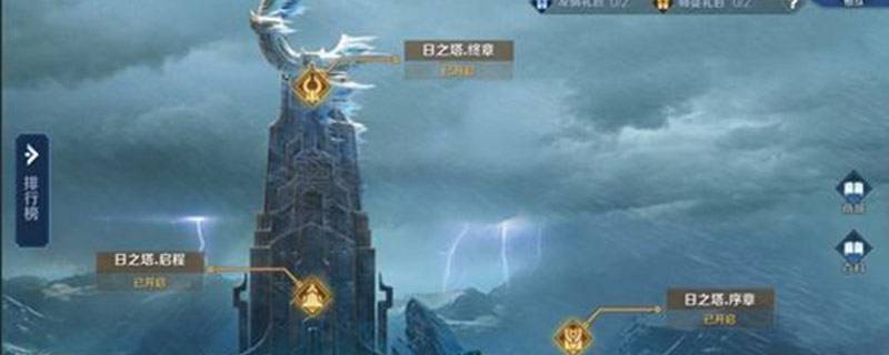 整个玩法包含两大关,日之塔一共分为启程和终章两大关,每一关分为简单、普通和困难三个难度,不同难度有的解锁需要达到一定的要求,关卡的进入条件包括通关前置关卡和总战力达到最低要求,只有两部分都满足时才能进行挑战,难度越高的关卡会掉落越好的奖励道具。