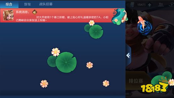 春江跃鲤:对指定好友使用春江跃鲤后增加与该好友间亲密度10点。