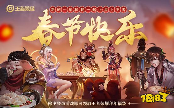 登录游戏即可领取拜年大礼:英雄碎片*5+猪八戒节日限定动作-放烟花+钻石福袋(保底288钻石,有机会开出2019钻石)+50点券优惠卡+新春回城特效礼包