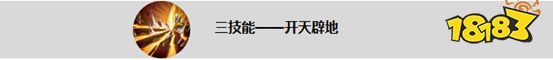 盘古向上跃起,将力量汇聚到灵能之斧上。力量汇聚完毕后盘古会将斧头朝前劈下,地面会朝前逐渐裂开,被地面的裂纹触碰的敌人会受到伤害,减速和缴械;蓄力期间盘古可以吸收附近友方英雄的力量,每吸收1个就能多劈出一道裂缝,最多劈出5道。