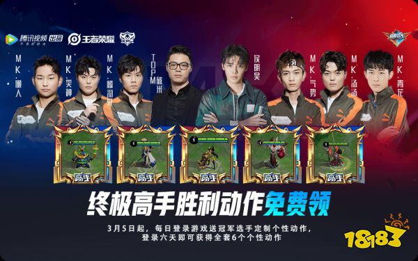 女神携首档职业电竞真人秀《终极高手》,在3月5日版本更新后累计登录送六大个性动作(来自冠军队伍MK六位队员的代表英雄)!另外还有英雄碎片、14日女神皮肤体验卡等豪礼等你喔!
