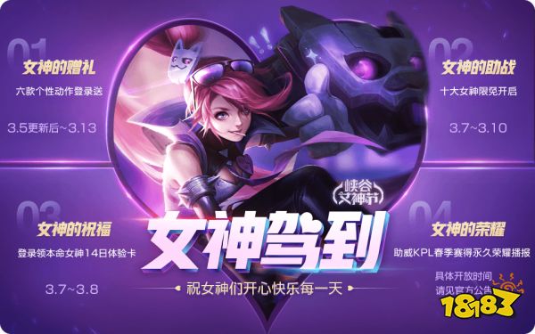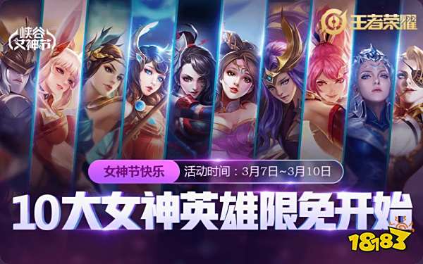 十大女神英雄限免开启,届时可以免费挑选一位你心仪已久的女神与你一起勇闯峡谷,记住和女神的约会时间咯,不准迟到,不准放鸽子!