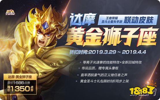 1. 圣斗士正版授权,达摩传说皮肤-黄金狮子座3月29日零点登场!