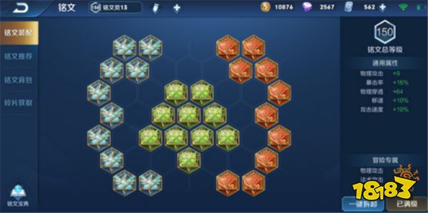 孤影搭配的第一套出装和铭文是穿甲流的狄仁杰,铭文搭配是10异变+10鹰眼+10狩猎。第一套出装孤影就另辟蹊径,搭配的铭文是战士常用的百穿铭文,能够为狄仁杰提供100点物理穿透、10%的攻速和10%的移速。有了百穿铭文加成的狄仁杰在前期打架会非常凶,就算是单人边路面对现版本强势的战士也丝毫不怂。