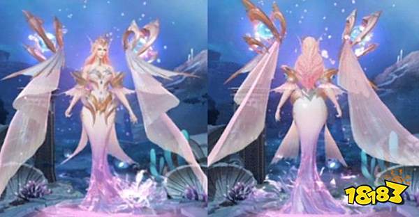 模型正背面:所谓星元皮肤,也就是该皮肤的升级版,海洋之心由蓝色升级为粉色,背景中添加了不少建筑。