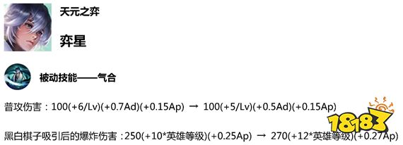弈星被动减少普攻伤害,增加黑白棋子吸引后的爆炸伤害。
