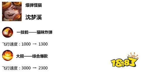 沈梦溪1技能飞行速度增加,大招飞行速度削弱。