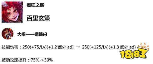 百里玄策大招增加伤害,被动攻速提升削弱。