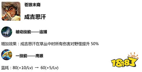 成吉思汗被动增加效果,1技能减少蓝耗。