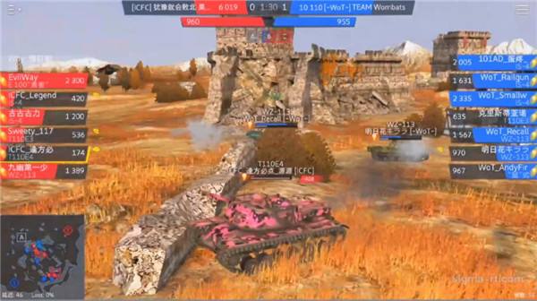 面对曾经在小组赛击败过自己的WOT,ICFC此役可谓是打起了双倍的警惕。针对WOT习惯在外线分散活力打冷枪偷袭的特点,ICFC选择在前期侦查后利用小范围内友方坦克的快速联动制造局部多打一的策略为自己打开了局面。WOT虽然对ICFC的坦克输出了不少伤害,但短时间内无法造成致命性打击,使得他们前期积累的优势瞬间化为乌有。