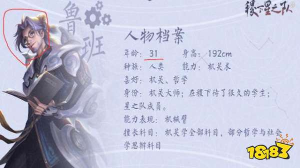 接着来看第二个,他就是鲁班大师了,可以说他是鲁班的爸爸,不过造型却有点像大叔版的张良。31岁就满脸络腮胡了,不过身高就比较高了,有192cm,不去打篮球怪可惜了。在想想鲁班七号为什么只有那么高呢。