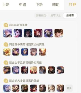 该功能是王者荣耀玩家所迫切的需要的,能够让玩家掌握到,自己所属段位的英雄强度。在下图的巅峰赛打野排行当中,你的本命英雄排在第几呢?