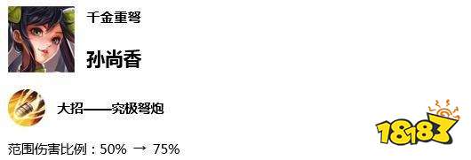 同样被加强的还有我们的大小姐和妲己,大小姐的输出得到了比较大的提升,这一次调整也确实是对于之前调整做出的弥补加强。而妲己的加强并不是大家期待的清兵能力提升,策划这一次是增加了她的基础生命值,大概是害怕增强妲己的清兵能力以后会超标吧,这也让妲己前期增加了生存能力。
