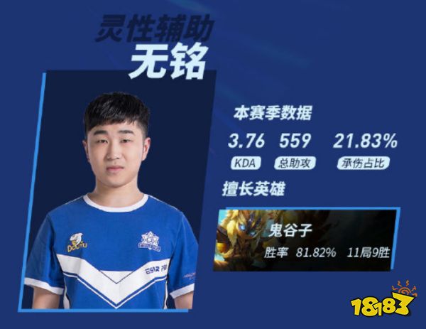 最后就是队伍中的辅助无铭了,他最擅长的英雄是鬼谷子,这个开团非常强势的英雄,无铭也是能找到很多机会来开出各种完美团,就算自己是死也能把敌人拉在一起,反正为队伍做贡献就行了。那么你们觉得这些是他们的本命英雄吗?那就让我们一起期待他们在冠军杯中的发挥吧。