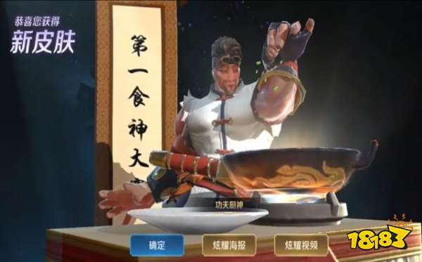 接着来听功夫厨神,这款皮肤特效方面和其他就不一样了,不仅花样多了,连音效和其他皮肤也都不一样