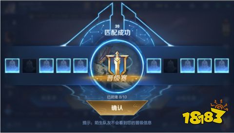 当你达到晋级赛时,首先你会在排位赛界面看到晋级赛标识;开始匹配前,会有晋级赛提示你和你的组队队友们这局是哪位朋友的晋级赛;在正式的匹配确认界面, 队友都能看见晋级赛的标识,匹配到的陌生队友不可见。