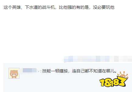 还有网友表示,这个英雄就是下水道的战斗机,根本没必要玩他,还有网友回帖技能一顿操作,最后自己都不知道在什么位置了,这点有点像火舞,都是一阵操作猛如虎,最后自己在哪里都不知道。