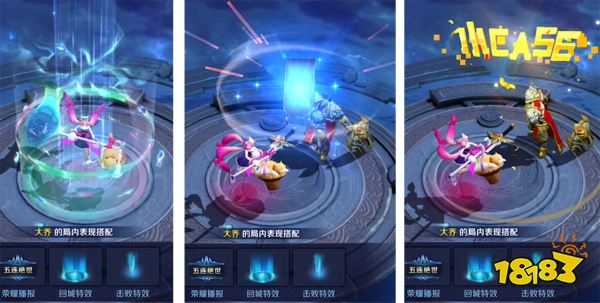 三款新增的特效分别是鲲之游弋回城特效:回城时一只鲲环绕在身周,并产生七彩的水圈。稷下邀约击败特效:击杀时出现一张榜单,并有迸发的光束,当前还未制作完成。小CASS击败特效,击杀后弹出电玩字样的小CASS弹幕。除此外新赛季还有之前爆料过的醒狮喝彩回城特效和曼切斯特回城特效,以及醒狮喝彩击败特效。另外定制界面可以根据皮肤来预览局内的特效效果。