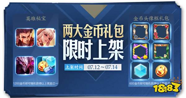 周五商城上架两款金币礼包,可以开出哪吒、公孙离、干将莫邪三个英雄和夏日乐园头像框、浓情端午头像框、2017情人节-男朋友头像框、2017情人节-女朋友头像框。概率分别是8%和7%。