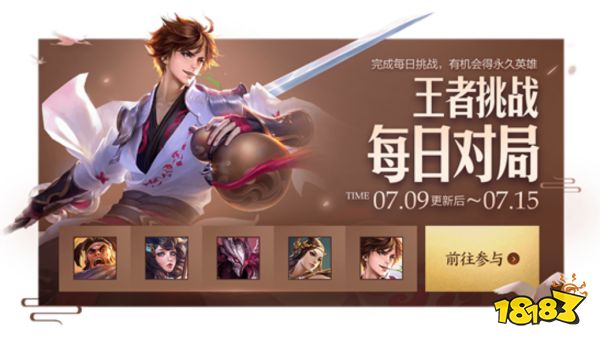 9号更新后至15号期间每日对局活动,每天对局两次可以获得两个王者挑战礼包,可以开出李白、虞姬、干将莫邪、苏烈、大乔五个永久英雄,概率是0.05%。