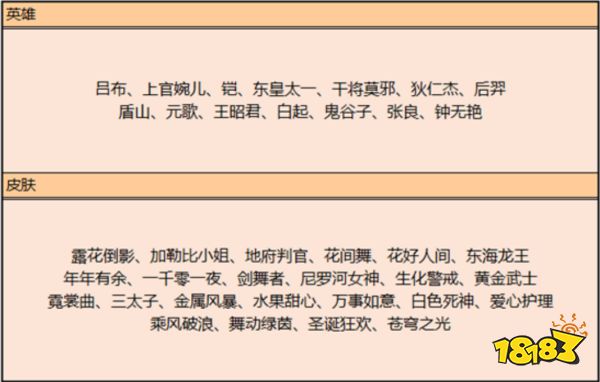 更新后夺宝奖池和碎片商店替换,奖池替换为吕布、成吉思汗、上分大吉、沈梦溪、夏侯惇、典韦,碎片商店替换为吕布、婉儿、苍穹之光、圣诞狂欢、舞动绿茵、乘风破浪、爱心护理等英雄和皮肤。