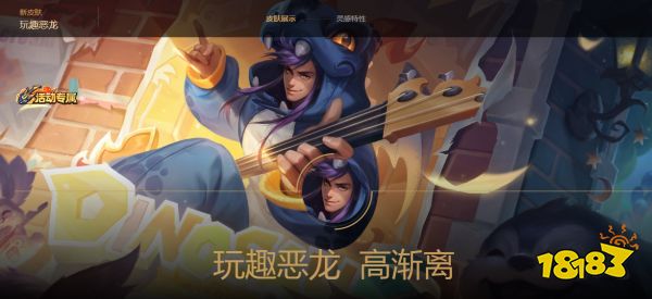 皮肤的造型是穿着恐龙玩偶睡衣,抱着一把电吉他,吉他的共鸣箱是一头喷火的龙头,背后还有一对小翅膀。