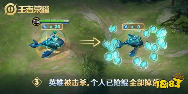 召唤师们靠近泡泡鲲,即可将其拾取。而死亡的时候,身上所有的泡泡鲲将会全部掉落。总“鲲”数达到20个并且可以保持20s的队伍,将获得比赛的胜利!