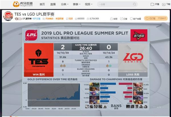 7月19日,LPL第七周第四个比赛日精彩开战。首场OMG迎战VG,黑暗势力四连败后终于迎来送分童子VG,但没想到状态低迷的他们自己才是鱼肉,两局惨败下来OMG帮助VG终结八连败。第二场TES迎战LGD,虽然此前LGD数次将联盟强队拉下马来,并成功在比赛中对TES造成巨大威胁,但经过大赛历练的TES已经愈发成熟,连续两局在中后期完成翻盘,以干净利落的二比零赢下比赛。